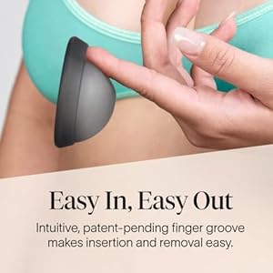 SIMPLE TO USE. Intuitive finger indent and soft silicone make it easy to fold and insert like a tampon. Tapered, textured base allows for slip-free grip and spill-free removal.