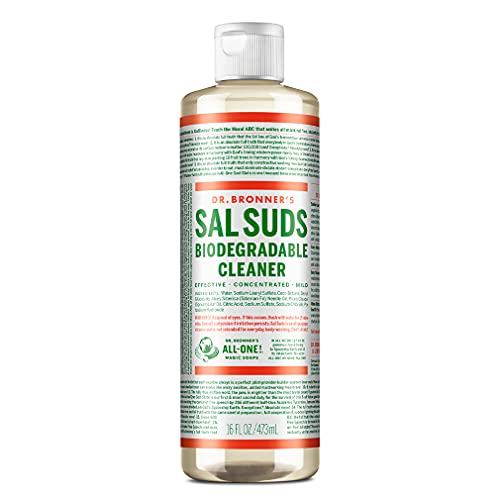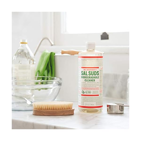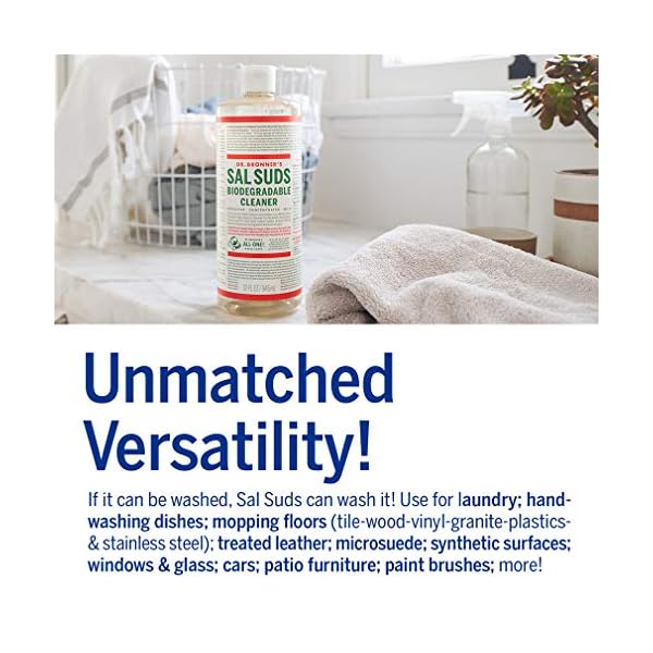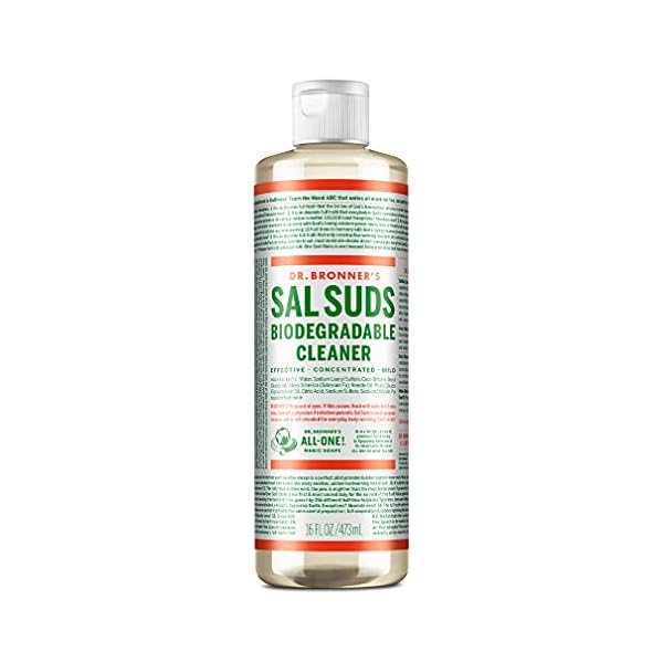 VERSATILE ALL-PURPOSE CLEANER: Dr. Bronner’s Sal Suds Biodegradable Cleaner is powerful & concentrated enough to clean floors, laundry, dishes, furniture, & cars—but gently formulated so it won’t irritate skin! The very best for home & Earth!