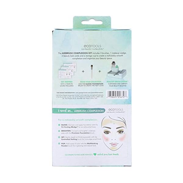 FULL FACE MAKEUP KIT: The airbrush makeup kit is design to create a smooth complexion & organize your beauty space. Includes 1 makeup wedge, 4 cosmetic brushes & 2 storage cups.