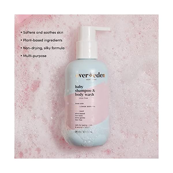 PLANT BASED SHAMPOO: Body Wash formulated with gentle, coconut-based cleansers at an ideal pH for baby’s dry, delicate skin. Nourishing plant-based oils work together to hydrate and soothe dehydrated, sensitive skin.