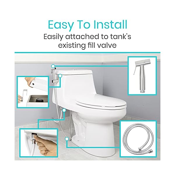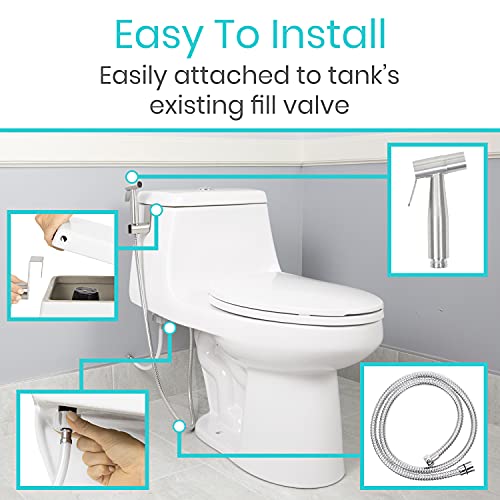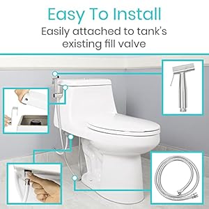 EASY WALL OR TANK INSTALLATION: Easily mount the Vive handheld bidet sprayer on the wall directly behind or beside the toilet or on the toilet tank itself with the included hardware, extra seals and thread tape. The leak-proof bidet sprayer is easy to install with both illustrated and video instructions, no plumber required. The included fittings are designed to work with water inlet diameters of ⅞”.
