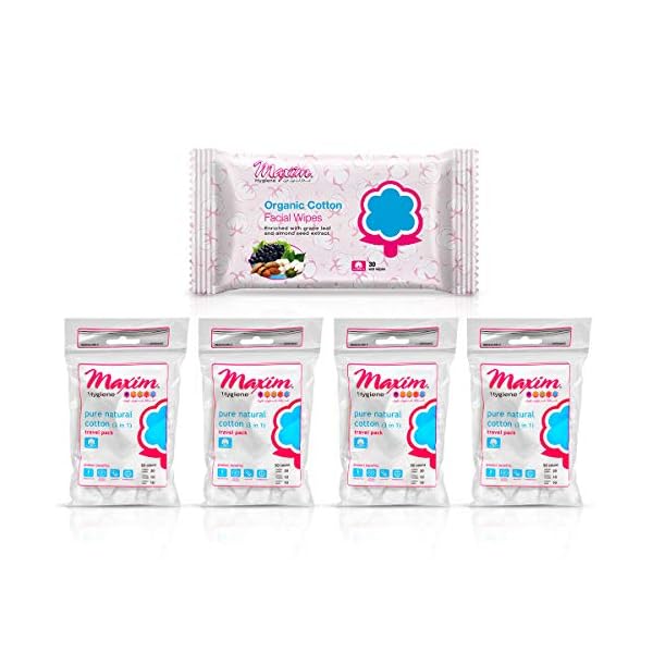 Maxim Cotton Rounds, Cotton Balls, Cotton Swabs Travel Pack, No Chlorine/Dioxin/Chemical,Biodegradable, Hypoallergenic Cotton Beauty Pack