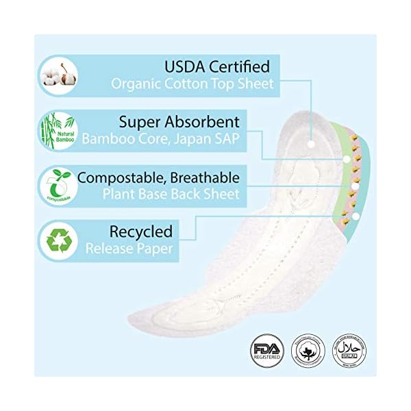 CHEMICAL-FREE, FRAGRANCE-FREE, LATEX-FREE, CHLORINE-FREE. Perfect for skin-sensitive women. No more contact with synthetic materials. Feeling fresh, safe and clean all day long.