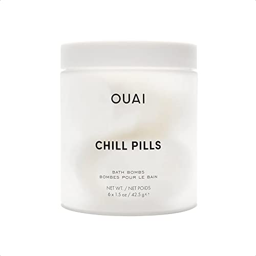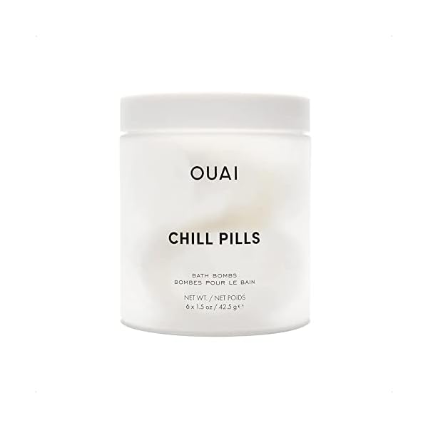 OUAI CHILL PILLS. When life gets hectic, take a chill pill! Pop a bath bomb into the bath and escape to serenity, scented with rose and jasmine. Just one bath bomb will calm and nurture your skin.