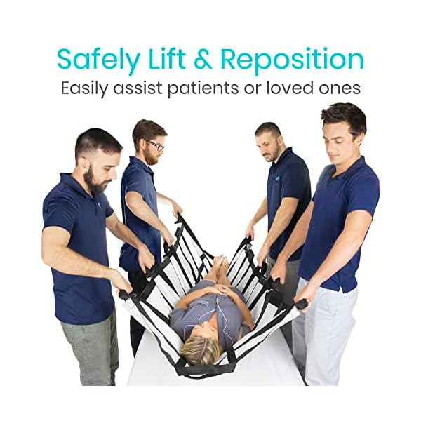 SAFELY LIFT AND REPOSITION: Safely assist patients and loved ones sit up, turn over or transfer with the Vive transfer blanket. The reinforced, waterproof blanket also features unique pockets for securing a backboard in the blanket for greater support when transferring patients.