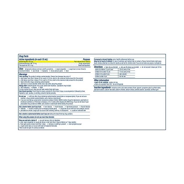 MULTI-SYMPTOM COLD RELIEF FROM COUGH, SORE THROAT AND FEVER: Provides fast relief of aches, fever, sore throat, cough, and stuffy nose. Effective for up to 4 hours