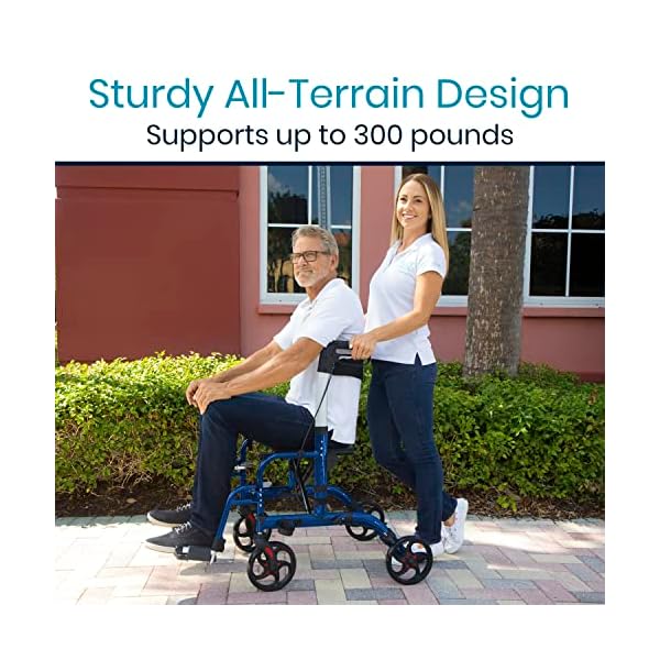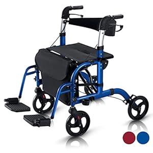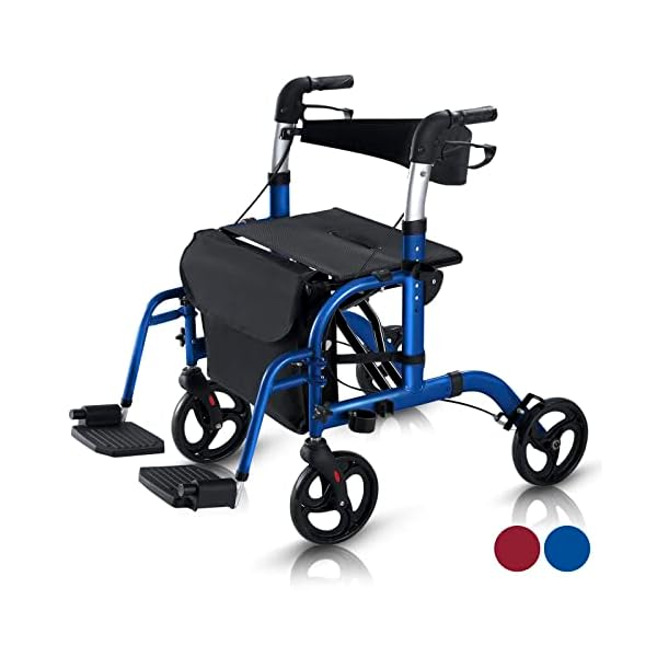 SAFELY WALK, REST OR RIDE: Easily transitioning from a rollator to a wheelchair, the dual purpose mobility aid is perfect for those desiring greater independence while providing safety and support, reducing injuries and setbacks due to fatigue and overdoing it. The hybrid rollator-wheelchair utilizes large, 8” wheels for easy maneuvering, in addition to providing exceptional stability on any terrain, including gravel, grass, carpet and more.
