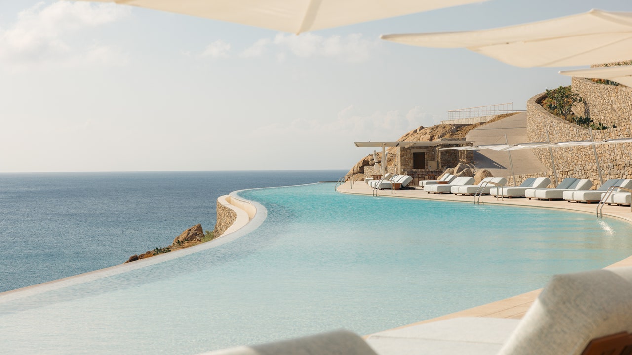 Children will love the “clubhouse” feel of Kivotos, perched above Ornos Bay. This is a family-run hotel, and you feel that everywhere you go. Rooms are clean, light-filled, and spacious, with individual “aquarium-style” pools attached to the majority. The décor is quirky rather than sleek—thousands of unusual antiques are dotted across the property (Murano glass knick-knacks, Baccarat chandeliers), which feels like a Lilliputian Greek village. There’s also a bougainvillea-filled courtyard for little ones to tear around in, along with an enormous central pool down by the sea (with a swim-up bar for the adults). The warm and helpful Kivotos team keeps colorful floaties and sandcastle kits on hand, with in-room babysitting available on request. It’s worth availing yourself of the nanny service to dine on the hotel’s candlelit private dock, one of the most romantic places for dinner on the island, too. Speaking of the hotel dock: Kivotos owns a 25-meter schooner, The Prince de Neufchâtel, which can be chartered for private trips to Mykonos’s most secluded coves and rocky islets (if you need a break from heaving beach clubs but don’t want to miss out on a minute in the Aegean sea, this is a must).