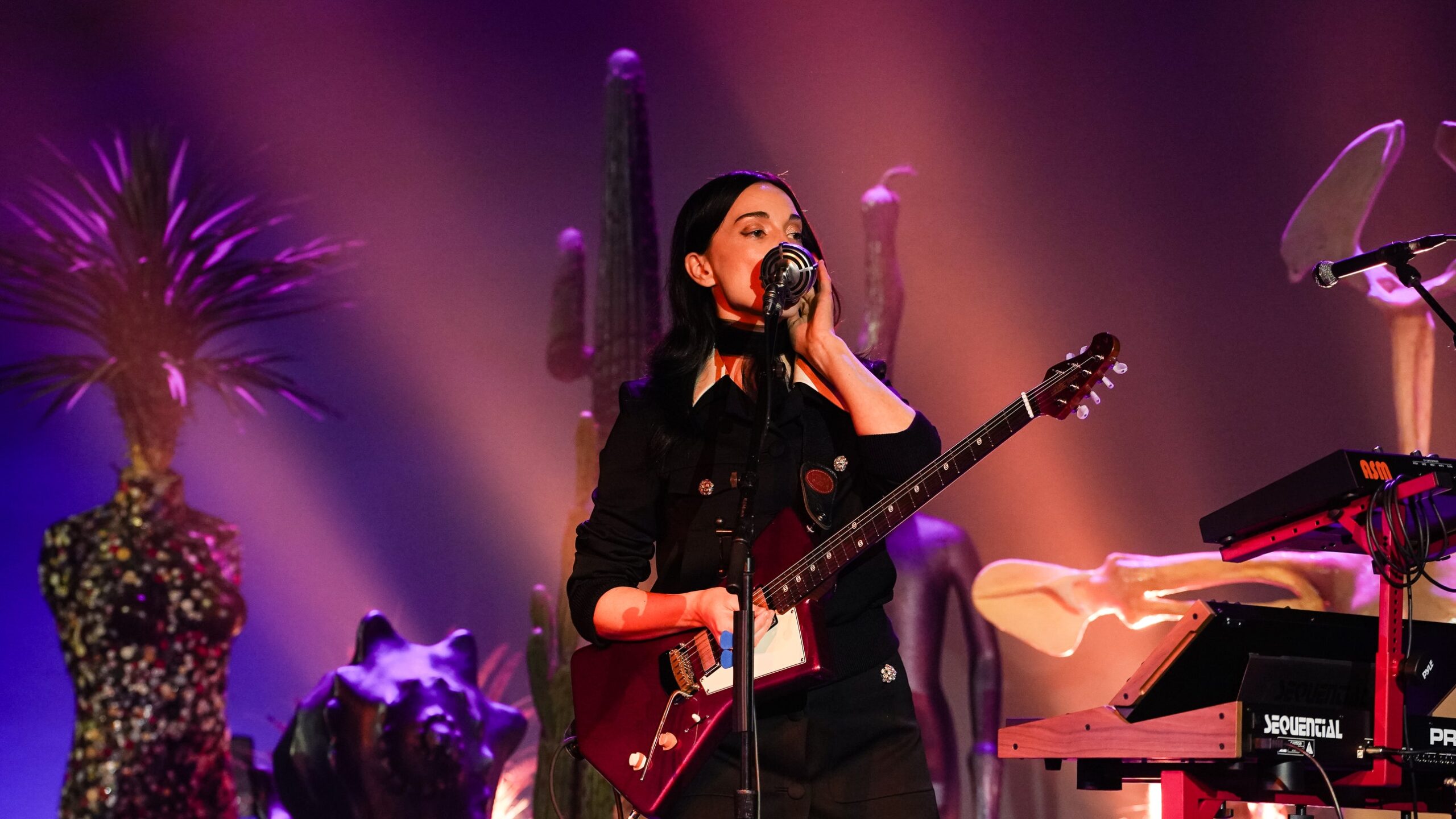 “All Born Screaming is actually a title that I’ve had since I was 22,” Clark, clad in a classic Bulgari Serpenti necklace, told Vogue. “I knew I was going to make a record or write a song or something called All Born Screaming, but I hadn’t lived enough life to really earn it. But now I’ve seen a lot more.” The record does indeed feature some literal screaming, but Clark prefers to think of it as something that goes from “pummeling to ecstatic mantra.” At MOCA, she performed a medley from ABS, along with a spine-tingling cover of the Portishead classic “Glory Box.”